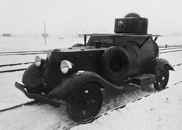 Железнодорожный вариант бронеавтомобиля ФАИ-жд, изготовленный мастерскими военного склада N2 60. 1936 год (фото из коллекции Г. Петрова).