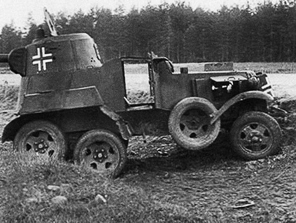 ГЕРМАНИЯ. Части вермахта в ходе первых же боев на территории СССР захватили большое количество бронемашин советского производства, причем многие из них были в полной исправности. Судя по фотографиям, использование трофеев началось уже в ходе первых боев. Однако сказать, сколько бронемашин использовалось вермахтом и частями СС, очень сложно, так как никакой статистики на эту тему нет. Известно только, что в составе полицейских танковых частей в 1942–1944 годах использовалось 9 бронемашин БА-10, получивших в вермахте обозначение ВА 203(r). В целом, по мнению автора, в 1941–1944 годах в составе вермахта и СС могло использоваться до 70 средних и до 30 легких бронемашин, причем большинство из них составляли БА-10.