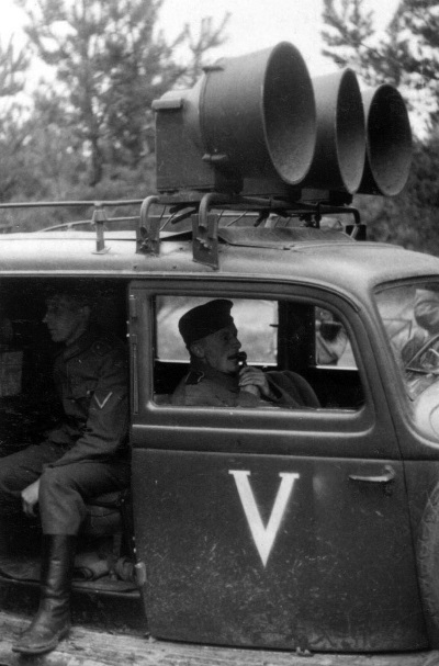 Безусловно, основным методом распространения нацистских идей были листовки, но важную роль играла и радиопропаганда, а также использование радиоавтомобилей для трансляции через громкоговорители. Мощность таких установок позволяла вещать на расстояние от 1 до 3 км.