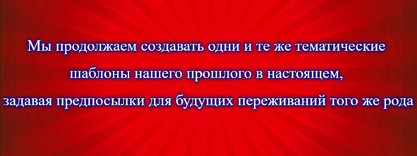Мы продолжаем создавать одни и те же тематические шаблоны нашего прошлого в настоящем, задавая предпосылки для будущих переживаний того же рода.