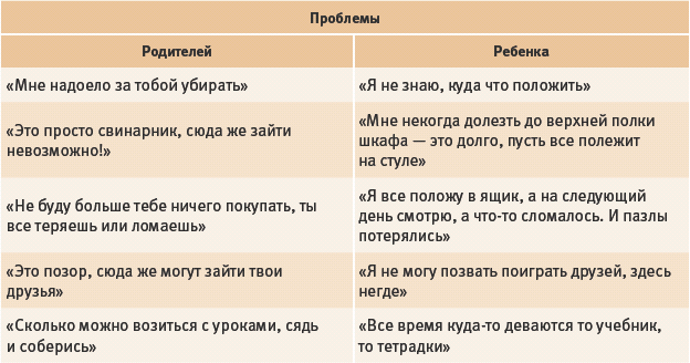 Проблема беспорядка заключается в том, что он может быть нескончаемым. Нельзя навести порядок раз и навсегда, нам необходимо его поддерживать, и в этом основная сложность. Если существующий порядок в комнате ребенка не соответствует его потребностям и целям, если логика этого порядка не соответствует его ребячьей логике, то с поддержанием порядка все равно будут возникать сложности вновь и вновь. Думается, что родителям не стоит быть слишком нетерпимыми по отношению к беспорядку в комнате ребенка до тех пор, пока вы вместе не создали для него удобную систему порядка.