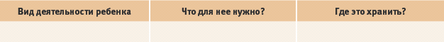 Как осуществить организацию пространства в комнате ребенкаСоставляем таблицу с нашими рабочими зонами: