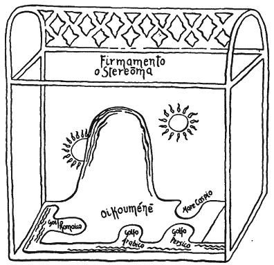 Наконец обнаружилось, что византийский географ VI века Косма Индикоплов в своей «Христианской топографии», тоже полагаясь на библейскую скинию, отстаивал идею четырехугольного универса с арочным сводом, покрывающим плоский пол Земли.