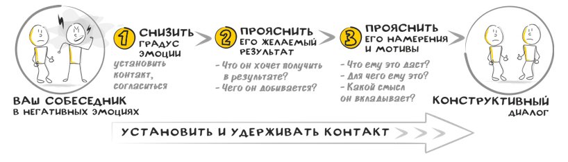Если вы общаетесь с человеком, которого захлестывают эмоции, первое что нужно сделать – это привести его в норму. Пока человек во власти эмоций, вы не можете вести конструктивный диалог.