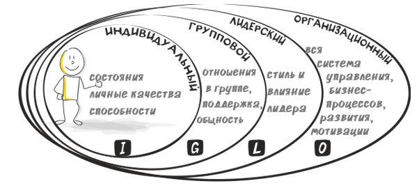 Ресурсы в любой организации одновременно существуют на четырех уровнях управления: индивидуальном, групповом, лидерском и организационном (IGLO[40]40