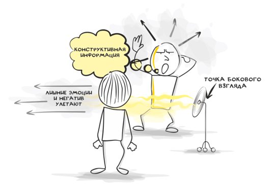 Находясь напротив эмоционально заряженного человека, который, возможно, кричит на вас, представьте, что где-то в стороне от «линии огня» находится вентилятор, который дует перпендикулярно потоку информации, летящей в вас.