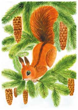На следующий день Попрыгуш привёл всю свою семью к красавице-ели. Белки с удовольствием отведали шишек и, благодарные, отправились домой. Приходили они потом ещё не раз, но шишки лущили очень аккуратно.
