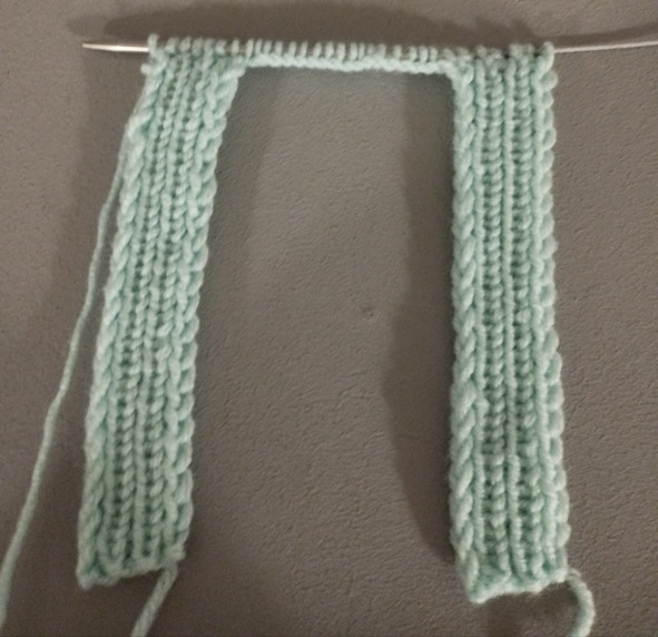 1 ряд: кромочная, 1 изнаночная, (1 лицевая, 1 изнаночная) – повторить 2 раза, 1 изнаночная