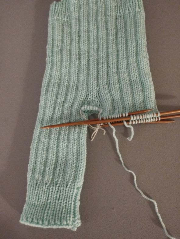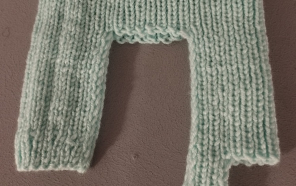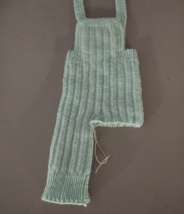 Затем будем вязать росток. Для этого провяжем 4 ряда только спинки комбинезона без планок и рукавов.