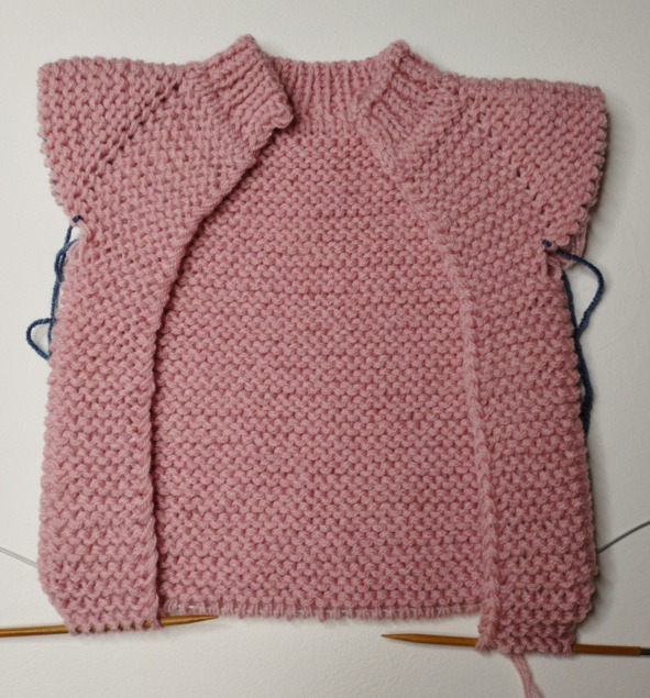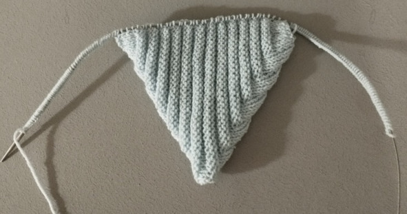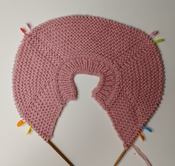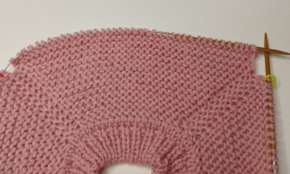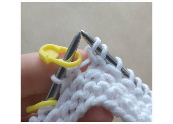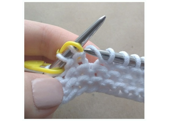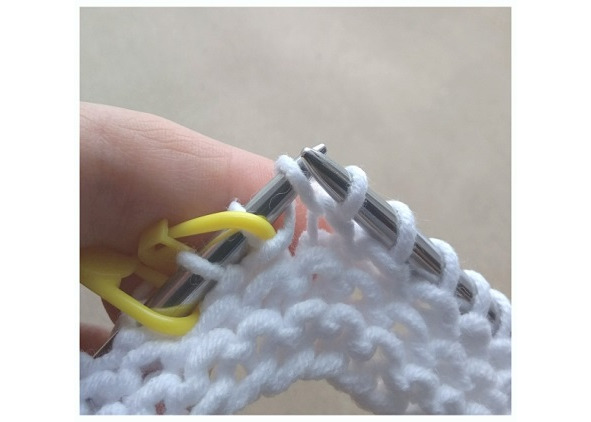 В 1 ряду платочной вязки нужно повесить маркеры для реглана: