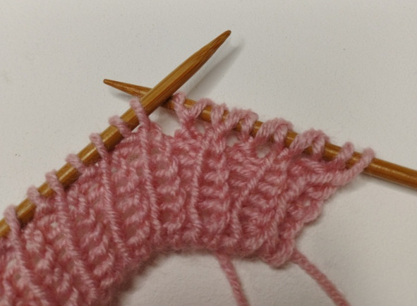 2 ряд: кромочная, 10 лицевых, 9 изнаночных, 10 лицевых, 1 изнаночная (31 петля)