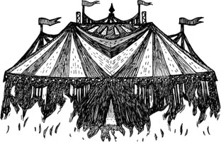 – На арене… под шатром… все уйдут – и мы умрем, – разносились протяжные слова по воздуху. Когда последний звук растаял, из темноты, которая особенно сильно сгустилась за слепящими фарами невидимых чужаков, раздался угрожающий рокот, который становился все громче и громче.