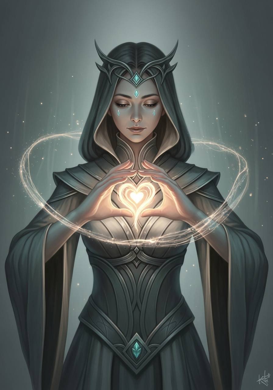 Ариэлла с любовью и состраданием посмотрела в его глаза, полные боли, затем подняла руки и осторожно коснулась его сердца. Ладони её засветились мягким светом, проникавшим в самые глубины души, согревая и осветляя каждую тёмную ранку.