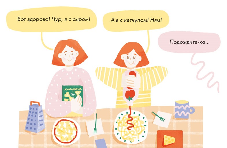 Кая и Мира – близнецы. Хотя они похожи внешне, но нравятся им разные вещи. Кая любит собирать конструктор, а Мира – рисовать, Кае нравятся собаки, а Мире – кошки. Но в одном они единодушны: макароны – самая вкусная еда на свете! Поэтому, когда их мама уехала в командировку, они решили, что будут питаться любимыми макаронами всю неделю.