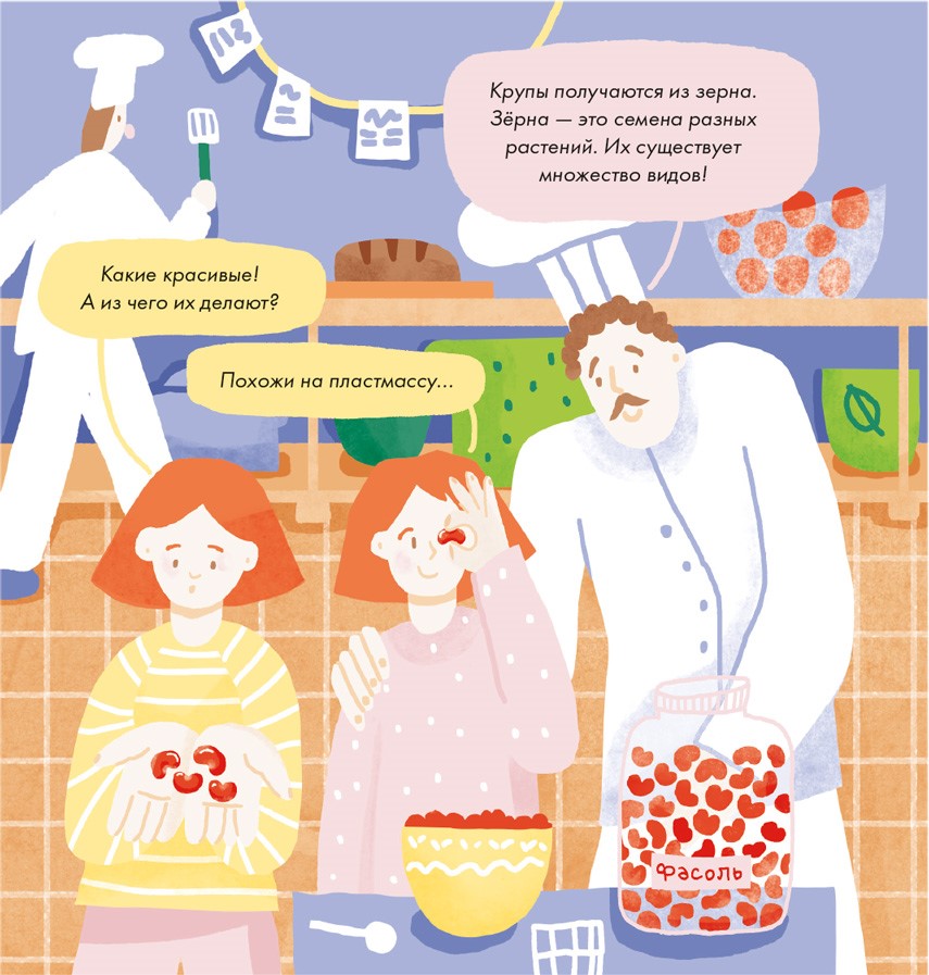 Кая и Мира решили, что в их домашнее меню обязательно надо включить блюда из красивых и полезных круп. Нужно только выбрать из каких. Они попросили папу рассказать им о крупах и бобах поподробнее.