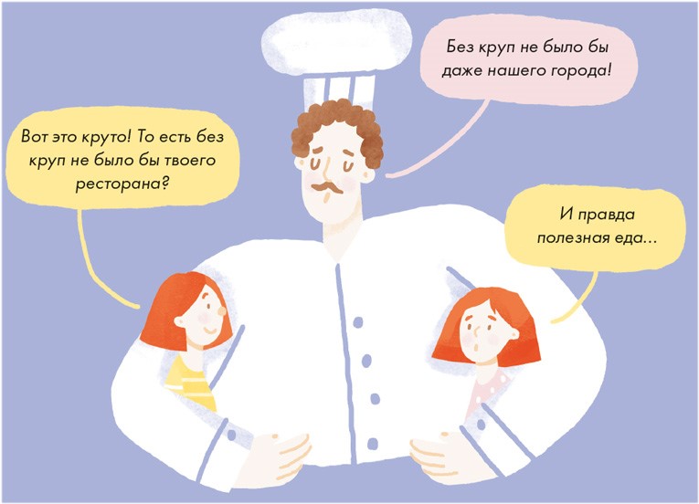 Польза круп заключается не только в развитии цивилизации. Папа рассказал Кае и Мире, что в каждом зёрнышке содержится очень много полезных веществ. Если есть крупы, организм будет получать практически всё, что необходимо для здоровья и энергии!