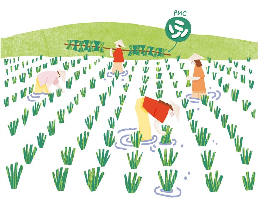 Рис – одна из самых распространённых культур. Это особое зерно, которое растёт… в мутной воде! Фермеры сажают его на полях, похожих на большие лужи. Ростки риса растут, впитывая воду. Когда они созревают, люди собирают зёрна и высушивают. Готовый рис способен надолго снабдить тебя силами и энергией!