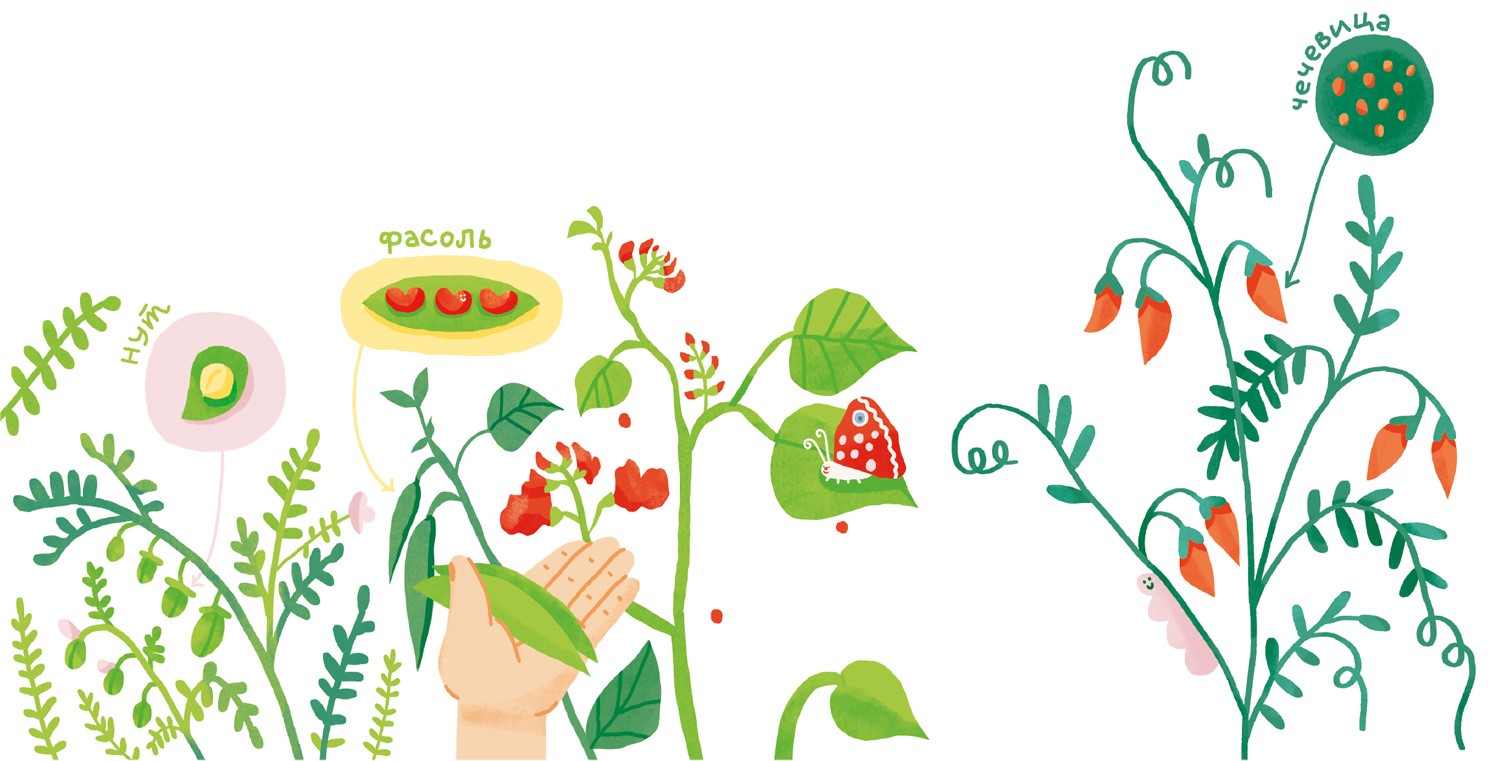Бобовые очень полезны для здоровья, в них много железа и волокон, которые помогают нам хорошо ходить в туалет! А ещё с ними получаются вкусные супы и салаты.