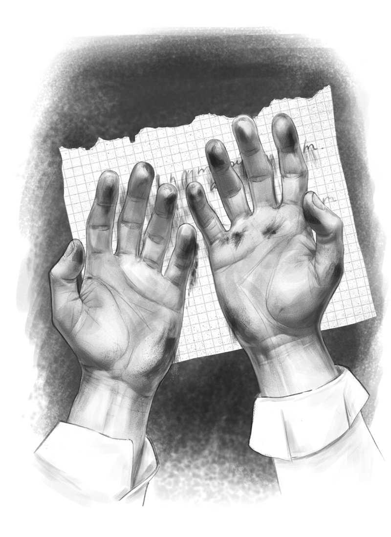 – Я… не успел как следует прочитать. Только развернул, и всё – буквы сразу осыпались… Вот руки теперь чёрные…