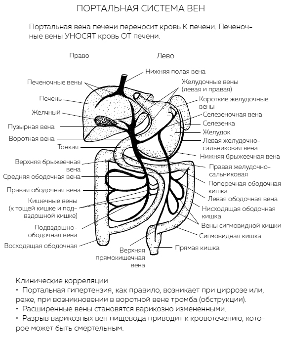 По системе venae portae (воротная, или портальная, вена) от кишечника в печень поступает кровь с питательными веществами и бактериальными или лекарственными токсинами. Также из селезенки по этой вене идут естественные продукты рециркуляции клеток крови.