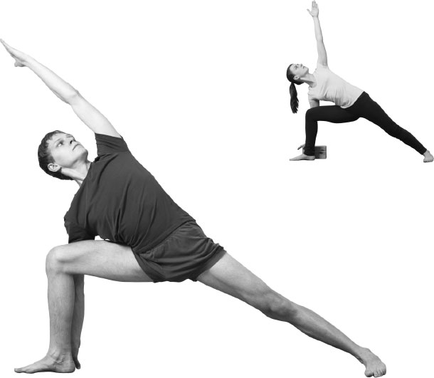 • Уттхита паршваконасана сочетает в себе две позы: Уттхита триконасану и Вирабхадрасану 2. Если она не получается сразу, работайте с ними больше.