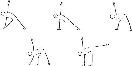 • Держите ноги, туловище, руки и ноги в одной плоскости, перпендикулярной полу. Сохраняйте обе ноги вытянутыми в коленях, а руки – в локтях.