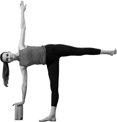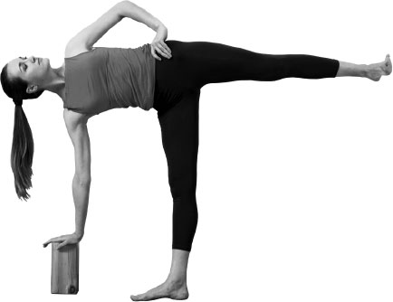 Выполните Уттхита триконасану вправо. На выдохе согните правую ногу в колене, подтяните левую стопу ближе к правой и поставьте ее на мячик под большим пальцем. Вытяните правую руку дальше вправо – вперед на 30 см и вправо на 5–10 см. Поставьте ладонь в положение чаши, т. е. прижмите все кончики пальцев к полу. Полностью вытяните правую руку. На выдохе распрямите правую ногу в колене и поднимите сильную левую ногу вверх до положения параллельно полу или чуть выше. Вытяните ноги, руки и туловище. Держите все тело в одной плоскости, перпендикулярной полу. Со вдохом разверните шею и голову. Посмотрите на большой палец верхней руки. Останьтесь в позе 20–30 секунд. На выдохе согните правую ногу и опустите левую стопу на пол. Отодвиньте левую ногу назад на расстояние 1,1–1,2 м от правой. Захватите правой рукой лодыжку и на несколько дыханий останьтесь в Уттхита триконасане. Со вдохом поднимитесь, поверните ноги влево и выполните позу в другую сторону, следуя всем предыдущим указаниям. На вдохе поднимитесь из позы. Поставьте стопы параллельно друг другу и на выдохе прыжком вернитесь в Тадасану.