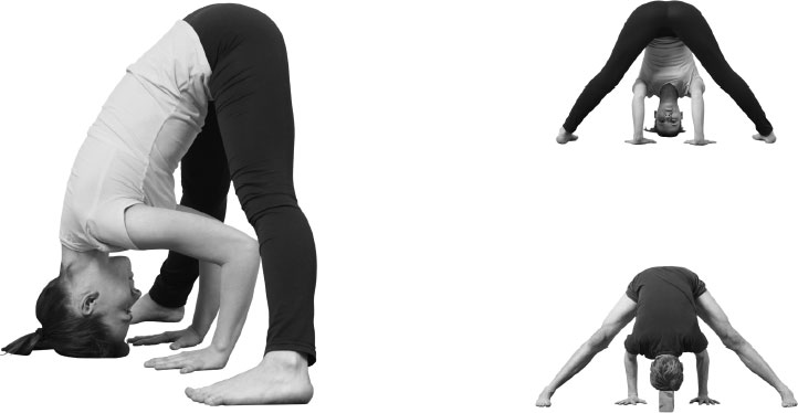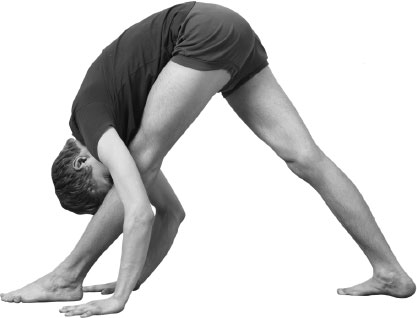 Стоя в Тадасане, поставьте руки на талию. Без прыжка расставьте стопы в стороны широко – на расстояние 1,2–1,4 м. Вытяните ноги в коленях, сделайте вдох. На выдохе вытяните туловище вперед до положении параллельно полу. Поставьте ладони на пол, запястья под плечами, крепко прижмите ладони к полу, вытяните пальцы рук. Вытяните переднюю часть туловища вперед, поднимите голову, сделайте вдох. На выдохе согните руки в локтях, опустите туловище вниз, поставьте макушку головы на пол. Если голова касается пола, продвиньте ладони дальше назад так, чтобы верхняя часть руки была параллельна полу, а нижняя – перпендикулярна. Останьтесь в позе 20–30 секунд. Дышите спокойно. Со вдохом вернитесь в предыдущее положение. Вытяните позвоночник. Поставьте руки на талию и на вдохе, сохраняя ноги сильными и вытянутыми, поднимитесь. Без прыжка сблизьте пятки, затем пальцы ног, снова пятки и аккуратно соедините ноги в Тадасане.