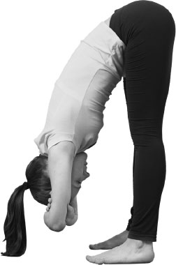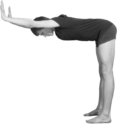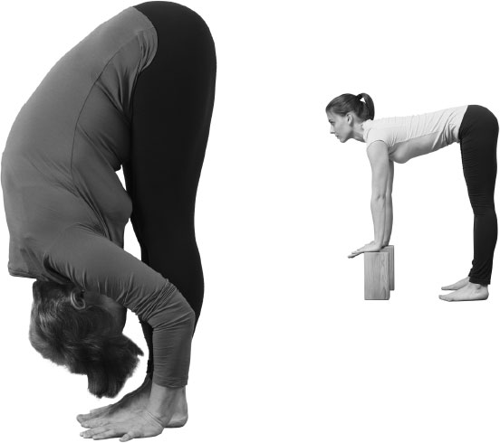 Стоя в Тадасане, вытяните руки вперед, разворачивая ладони и внутреннюю поверхность рук к центру. Поднимите руки вверх. Сделайте вдох. На выдохе вытяните руки и туловище вперед. Поставьте кончики пальцев рук на пол чуть впереди и снаружи от стоп. Вытяните позвоночник, сделайте вдох. На выдохе прижмите ладони к полу с двух сторон от стоп, сгибая руки в локтях, вытяните туловище вниз и коснитесь лбом голеней. Не напрягайте живот, шею и голову. Дышите спокойно. Останьтесь в позе 20–30 секунд. Со вдохом вытяните руки и позвоночник, поднимите голову. Со следующим вдохом, вытягивая руками туловище вперед и вверх, вернитесь в Тадасану.