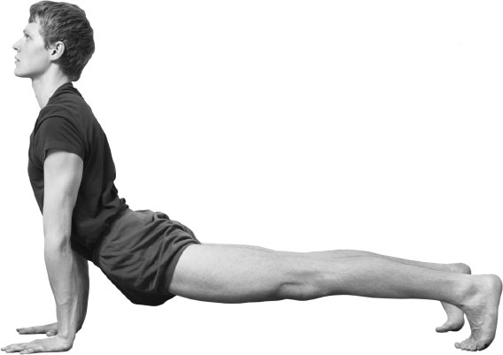 Этот вариант позы учит активно вытягивать ноги и помогает увеличить амлитуду прогиба назад, освобождая область таза. Чередуйте его с полной Урдхва мукха шванасаной.