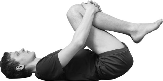Лягте на спину. Соедините ноги и затем согните их в коленях. Не отрывая крестец от пола, приблизьте ноги к груди. Переплетите пальцы рук в замок на верхней части голеней и полностью расслабьтесь. Взгляд, не напрягая глаза, опустите вниз. Дышите спокойно. Если чувствуете, что хочется закрыть глаза, не боритесь с собой. В этой асане можно полностью расслабиться и позволить дыханию стать более глубоким. Оставайтесь в позе 30 секунд – 1 минуту. Затем поменяйте переплетение пальцев рук и выполните позу еще раз.