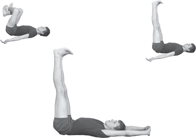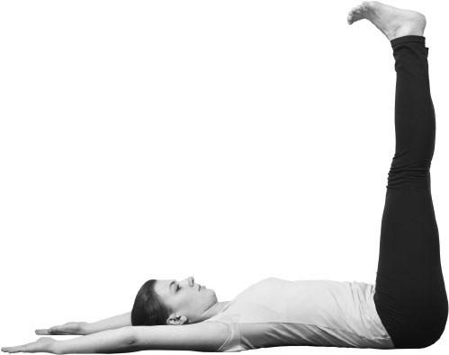 Лягте на спину. Выполните Супта урдхва хастасану. Согните ноги в коленях, оторвите стопы от пола. На выдохе вытяните ноги вверх перпендикулярно полу. Держите руки и спину хорошо вытянутыми на полу. Старайтесь не сжимать внутренние органы живота. Дышите спокойно. Останьтесь в позе 20–30 секунд, постепенно увеличивая время пребывания в позе до 1 минуты. На выдохе согните ноги, опустите их на пол и расслабьтесь.