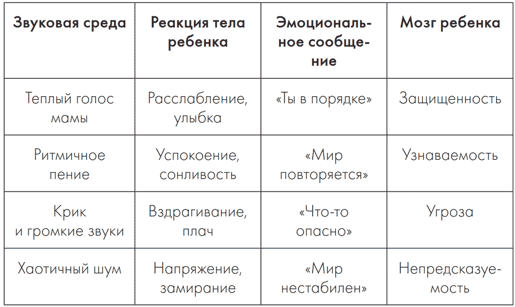Исследования нейропсихологов доказывают, что голос родителя напрямую влияет на активацию парасимпатической нервной системы, отвечающей за расслабление. Эксперименты в семьях с детьми до года показали: семьи, в которых поддерживалась эмоционально теплая атмосфера, не было ругани, криков, резких звуков, ребенок проявлял стабильность в поведении и реакциях. И наоборот, в семьях с непредсказуемым и пугающим аудиальным фоном дети вели себя капризно, у них нарушался режима сна, появлялась тревожность и болезненность.