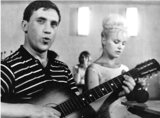 «В то время я была студенткой 4-го курса театрального училища имени Щукина. На тот момент я уже снялась у Гайдая (“Операция «Ы» и другие приключения Шурика”. – М. Ц.), ещё в двух-трёх фильмах… В это время в Москву приехал молодой и, как выяснилось потом, очень талантливый режиссёр Виталий Четвериков и предложил мне играть заглавную роль в своей картине «Саша-Сашенька». Это роль девушки-маляра, такой мечтательницы, выдумщицы, которая работает на стройке, но прорывается в массовку в кино, а потом рассказывает подругам, что её снимают в главных ролях. Такой образ советской девушки – очень чистой, нравственной. Замечательная роль! Четвериков уговаривал меня сниматься, а я сопротивлялась, потому что все мысли были только о Театре сатиры, куда меня брали, но всё-таки как-то так получилось, что он меня уговорил. В разговоре он мне сказал, что со мной будут сниматься актёры Театра на Таганке. Этот театр был создан на базе спектакля “Добрый человек из Сезуана”, и мы, студентки первого-второго курса, были свидетелями его создания. Для нас это было очень событийно – из стен нашего института вышел такой естественный, такой острый театр. Четвериков стал перечислять, кто будет сниматься. Я буду главной героиней, а в окружении меня – Золотухин, Нина Шацкая и Высоцкий. Честно говоря, в то время мне фамилия Высоцкого мало о чём говорила. Мне было тогда двадцать лет. Ну что мы знали тогда о Высоцком… В фильме он играл парня с гитарой, у него ещё и роли как таковой не было. Это говорит о многом, это говорит о том, что режиссёр не выписал ему линию, не создал ему характер…Мы пришли на перрон, они сели в своё купе, я – в своё, и мы поехали в Минск. Я ехала одна, меня они к себе не пригласили. Чувствовала я себя как-то не очень комфортно… Как я понимаю, через пятнадцать-двадцать минут там уже ели и пили, я слышала хохот, разговоры громкие. Тут я слышу, что кто-то достал гитару, заиграл и запел. Голос меня совершенно потряс, я влюбилась в этот тембр. Мне безумно хотелось постучаться к ним в купе и сказать: “Можно мне к вам?”, но было неловко. А хотелось просто сидеть и слушать эти песни, слушать этого парня с гитарой. Просто присутствовать хотелось, познакомиться лично. Я посидела в купе, потом вышла в коридор, стояла долго-долго у их двери. Слушала, слушала, но так и не постучалась. Прекратили они петь и веселиться часа в четыре утра. Утром мы приехали в Минск, нас встретили, мы поехали в разных машинах в гостиницу, а часа через два-три встретились уже в павильоне на “Беларусьфильме”. Начался первый съёмочный день. На Володе была, как сейчас помню, такая полосатая трикотажная рубашечка с синим воротничком. Он был совершенно очарователен, не выпускал из рук гитару. Тут уже у меня была возможность подсесть к нему и сказать, что я не спала и всю ночь слушала, как он поёт. Он так наивно мне говорит: “А чего ж ты не вошла? Пришла бы, села с нами…” Я ему как-то кокетливо сказала: “Ну меня же никто не приглашал”. Он мне что-то ответил, и у нас сразу возникли такие тёплые, дружеские отношения. Мне с ним общаться было значительно легче, чем с Золотухиным и Шацкой. В свободное время я всё льнула к нему. Я уже стала приходить вечером в комнату, где он пел, туда же приходил и режиссёр. Я, конечно, сидела и молчала. У меня был немножечко другой стиль жизни. Они уже были актёрами театра, а я была студ