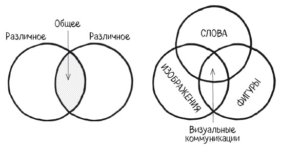 Эта схема, с которой большинство из нас знакомятся еще в школе, полезна для отображения общего и различий между двумя и более множествами данных. Она проста для понимания и, коль скоро она используется в образовании, тоже несет на себе некий математический шлейф, о котором речь шла выше.