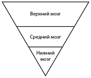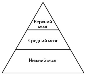 Три мозга иррационального человека выглядят вот так, контроль над ситуацией держит мозг рептилии. Это заставляет человека реагировать по типу «бей или беги», а также обуславливает узость взгляда на мир.