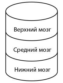 Ваш мозг, в свою очередь, работает вот так. У вас всем заправляет верхний слой, неокортекс, поэтому вы можете думать логически и видеть вещи с разных сторон.