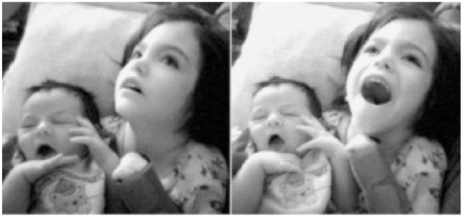Рис. 5. Реакция девочки с гидранэнцефалией, которой положили на руки младшего брата