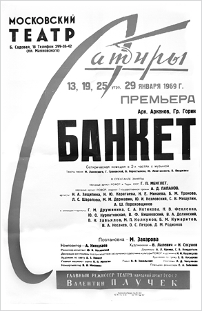 Разумеется, я не хочу сказать ничего плохого в адрес коллектива Театра сатиры (после успеха «Доходного места» – спектакля, поставленного мною в 1967 году, я ощутил со стороны моих коллег самые добрые чувства, товарищескую поддержку, внимание), но начало репетиций с ведущими артистами, конечно, было сопряжено с известным напряжением.