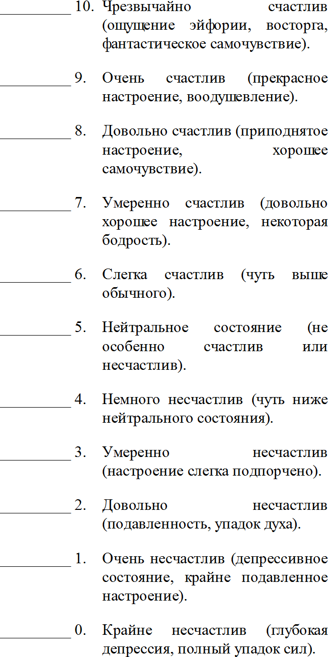 Насколько счастливым или несчастным вы обычно себя чувствуете? Отметьте одно из приведенных ниже утверждений, которое лучше всего описывает ваш средний уровень счастья.