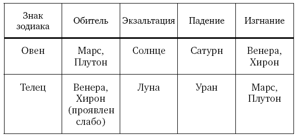 Планета в обители дает знаку изначальный потенциал, а в экзальтации – стимул к развитию, творчеству.