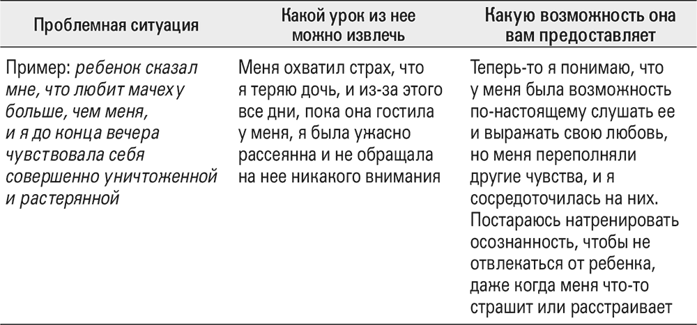 Постарайтесь всегда осознавать свои внутренние состояния, чувства и мысли, постоянно наблюдать за собой, чтобы понимать, что именно вы чувствуете и действуете ли осознанно или просто реагируете автоматически под влиянием эмоций. Несколько раз в день старайтесь улучить момент и разобраться, что вы чувствуете и как поступаете. Будьте милосердны к себе: стремясь и впредь соответствовать своим воспитательным целям и ценностям, примите и то, что ваши возможности ограниченны.