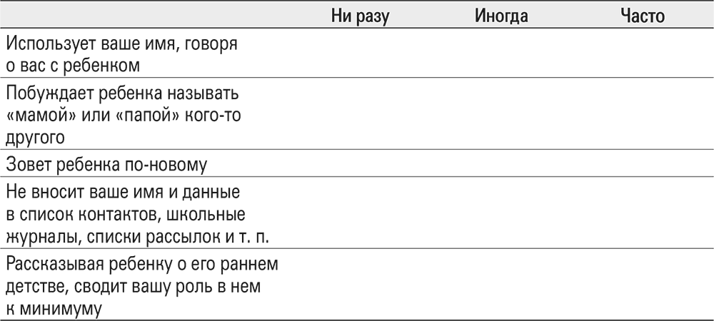 Упражнение 2.1. Пытается ли ваш бывший вытеснить вас из души ребенка и заменить кем-то другим?