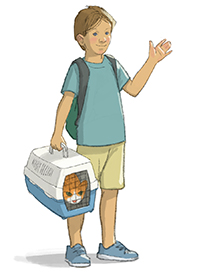 В этот момент мама Илюши, тётя Наташа, вытащила из машины переноску с кошкой.
