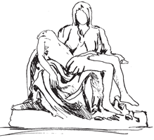 Вспомни, как именно Богородица держит мертвого сына. У Микеланджело было тысячу вариантов расположить это тело. Но он положил его на колени Богородице так, что от поддержки ее руки, одно плечо Иисуса приподнято, поэтому ему пришлось добавить себе уйму работы, чтобы из камня естественно вытесать мертвое тело с приподнятым плечом и висящей рукой.