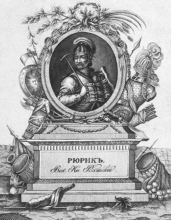 «Рюрик, Великий Князь Российский». Гравюра, напечатанная в 1805 г. историком, издателем и коллекционером Платоном Петровичем Бекетовым (1761–1836), собиравшим портреты великих людей русской истории (напечатана в книге: Е.Е. Филипповский. Краткое историческое и хронологическое описание жизни и деяний Великих Князей Российских, Царей, Императоров и их пресветлейших супруг и детей. – Т. 1. – М., 1805). У Мавро Орбини, как и у многих его современников, не вызывало сомнений славянское происхождение Рюрика – из Вагрии, западной области «Северной Славии». Народ Вагрии Орбини считал «во всем единообразным» жителям Руси, призвавшим на княжение Рюрика и его братьев