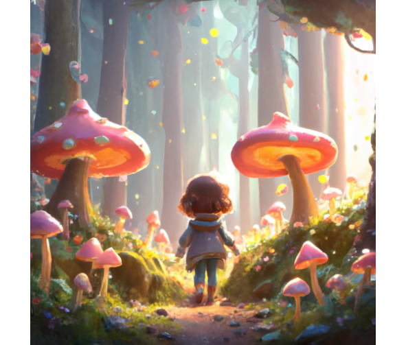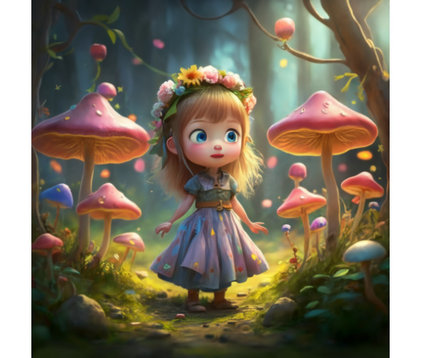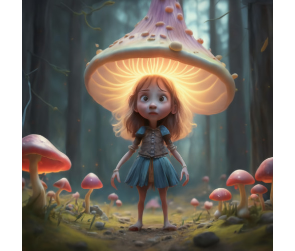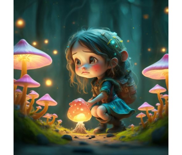 Глория стояла перед гроздью светящихся грибов, ее сердце колотилось от волнения и любопытства. Чарующая музыка, исходившая от них, наполняла воздух, окутывая ее мелодичным коконом, который, казалось, манил ее ближе. Она не могла сопротивляться притяжению их магии, и ее охватило непреодолимое желание – ей захотелось попробовать один из грибов.
