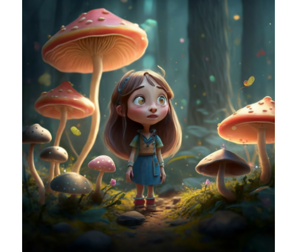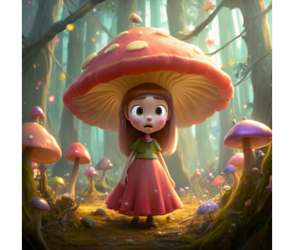 Детская сказка о девочке, которая съела гриб и сама превратилась в гриб.
