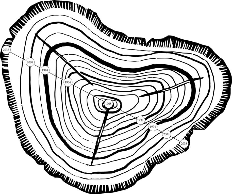 – Каждый год жизни это дерево чуть-чуть раздвигает кору и впускает под нее камбий – древесную ткань, образующую годичное кольцо древесины, которое покрывает кольцо, возникшее годом ранее. Этих двенадцати тысяч слоев сердцевины дерева достаточно, чтобы донести хвою его кроны до самых облаков.