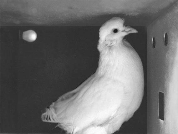 Б. Ф. Скиннер первым из ученых систематически изучал «суеверное» поведение у животных, отмечая, что когда пищу предлагали голубям через произвольные промежутки времени, а не по более предсказуемому строгому расписанию с подкреплением, при котором клевание клавиши, помещенной в бокс, где содержался голубь, приводило к выдаче пищи через небольшой кормораздатчик (рис. 1), голуби демонстрировали ряд странных поступков (например, прыжки из стороны в сторону или кружение против часовой стрелки) перед тем, как клюнуть клавишу. Птицы исполняли нечто вроде «танца для вызова дождя». Голуби поступали так потому, что для них было установлено расписание подкрепления с переменным интервалом, согласно которому временной интервал между получением пищи как поощрения за клевание клавиши варьировался. Все, что происходило в этом промежутке времени между клеванием клавиши и подачей устройством пищи, маленький голубиный мозг воспринимал как паттерн.